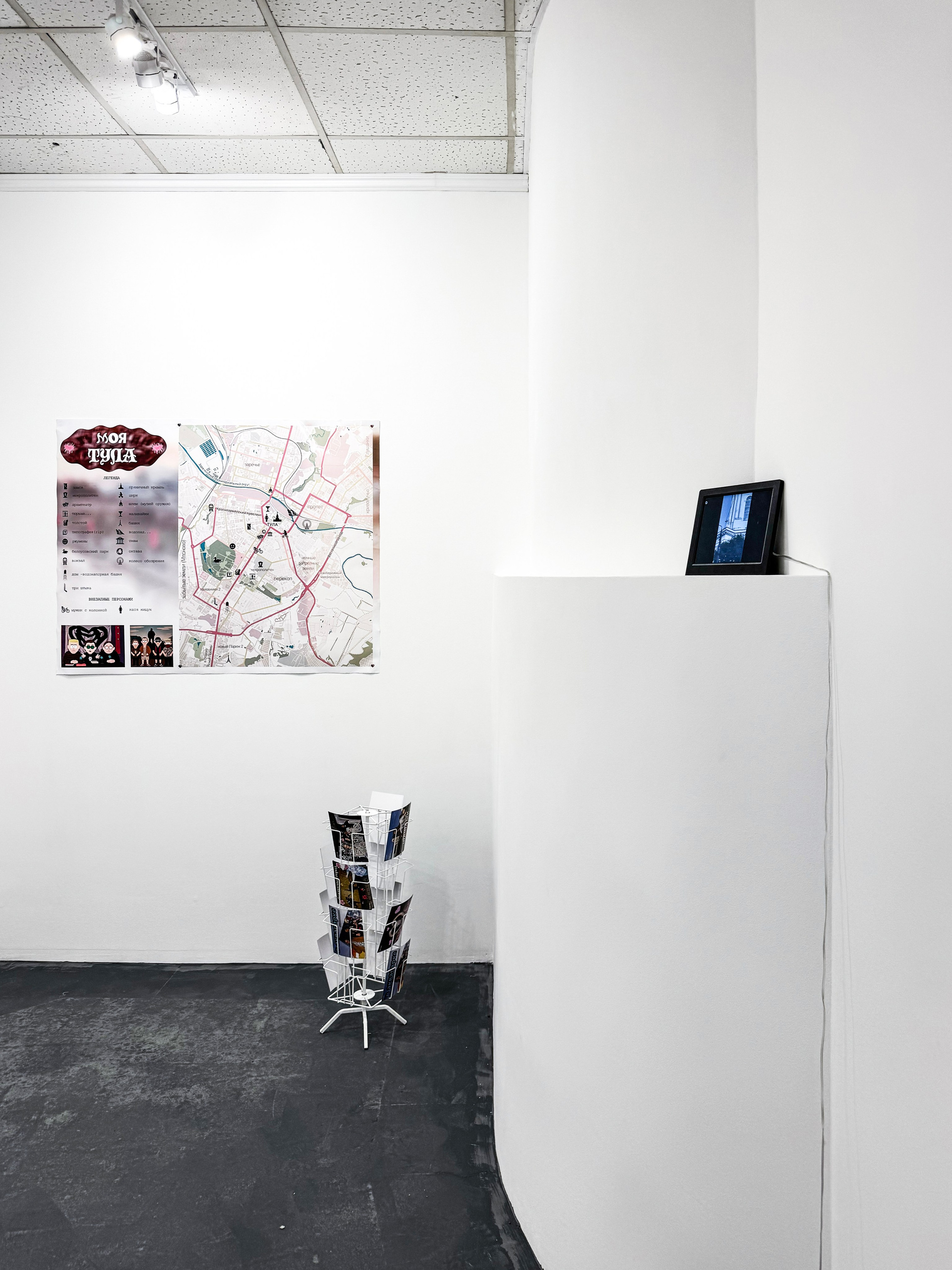 Работая с теми же механизмами визуального насаждения «Дом культуры» предлагает собственную версию: Тула как столица современного искусства. Туристические объекты начинают мерцать между реди-мейдами и объектами искусства: тантамареска становится живописью, подставка с открытками — скульптурным объектом, а видео-реклама туристических мест — видео-эссе с элементами дрейфа.
